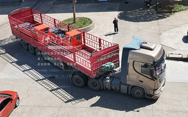 河南客戶采購(gòu)的2臺(tái)礦用8噸蓄電池電機(jī)車(chē)都是變頻調(diào)速和氣制動(dòng),今天由專車(chē)發(fā)往客戶的礦山。