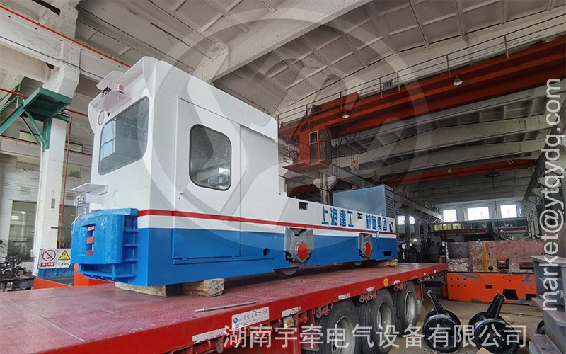 檢修完的25噸蓄電池湘潭電機(jī)車由專車發(fā)往上海。