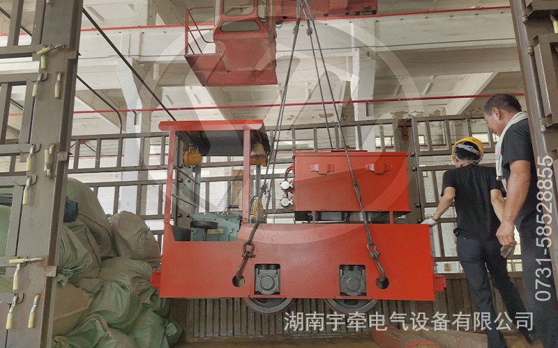 防爆型2.5噸湘潭電機(jī)車裝車前,工作人員對電機(jī)車進(jìn)行了全方位的檢查和調(diào)試,確保各項性能指標(biāo)都達(dá)到更佳狀態(tài),隨后用專業(yè)的固定裝置將其牢牢固定在運輸車輛上,保障運輸過程中的安全。